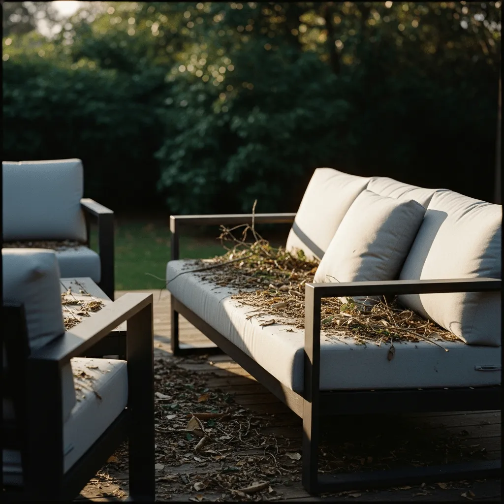 Outdoor furniture covered in debris despite your "screening"